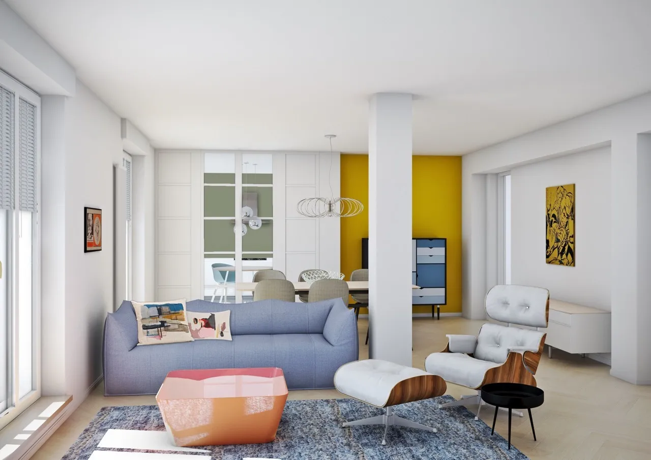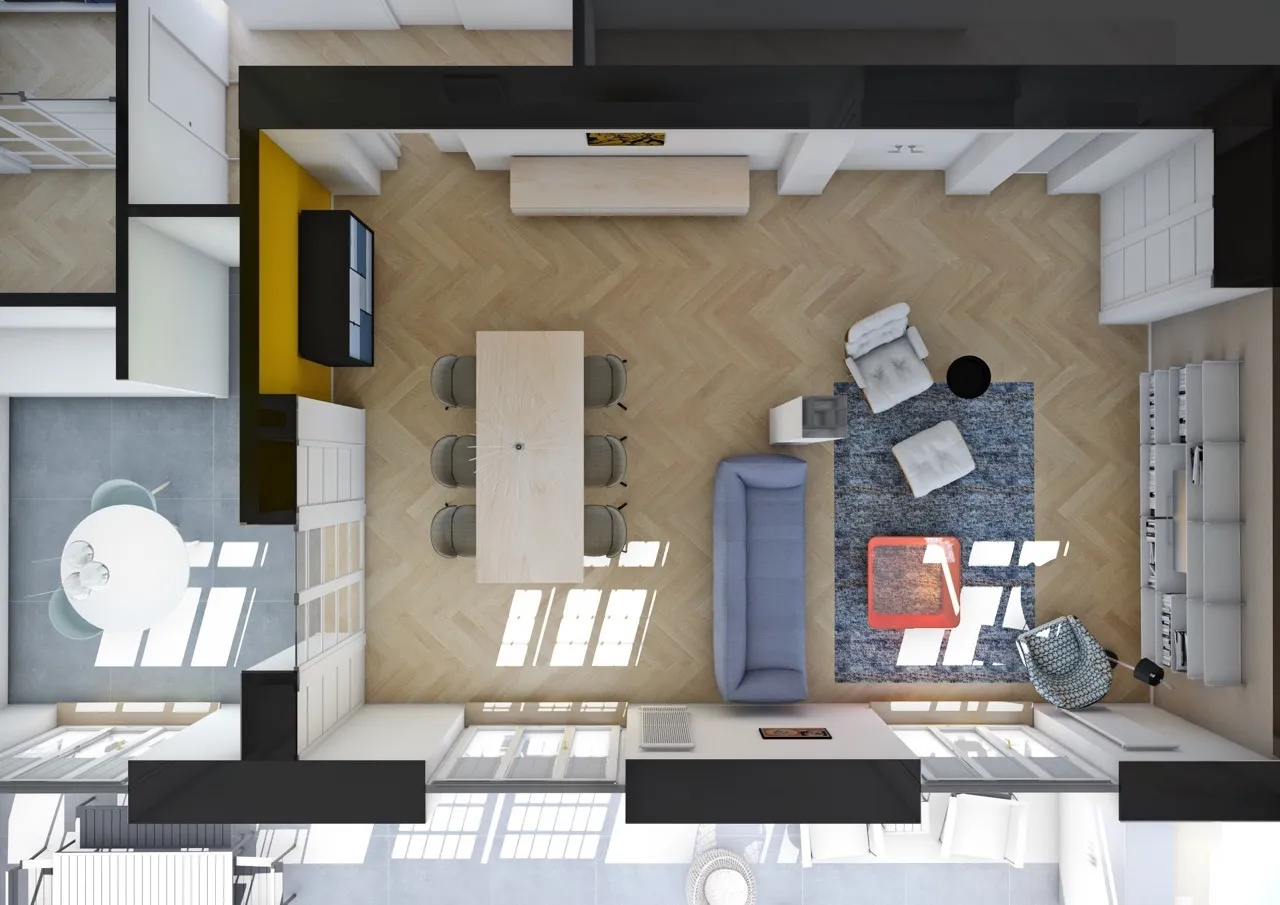 Un progetto solo in parte realizzato di arredo per un grande appartamento con terrazzo.