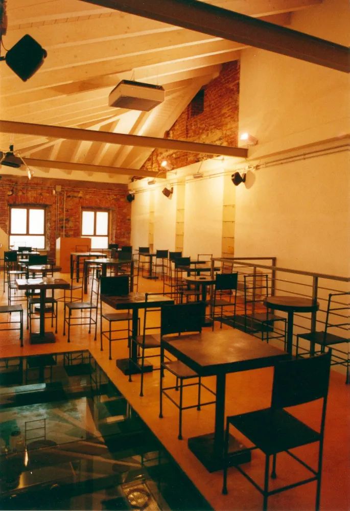 Nato come officina meccanica, trasformato in luogo polifunzionale, bar, ristorante, spazio espositivo.