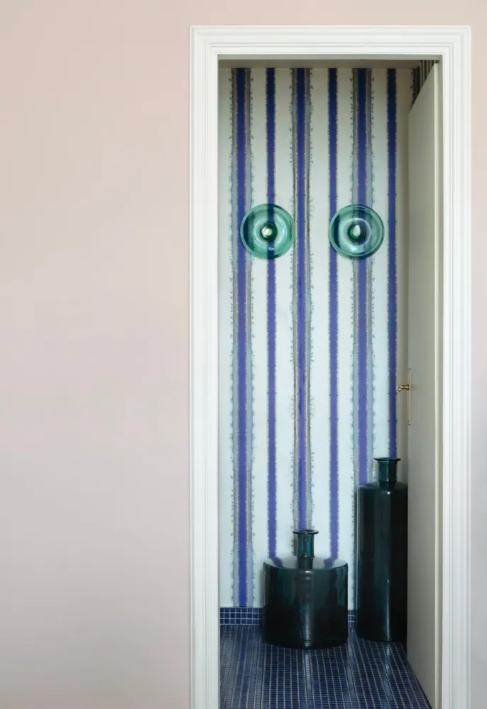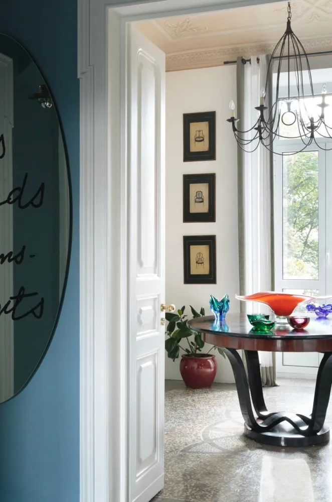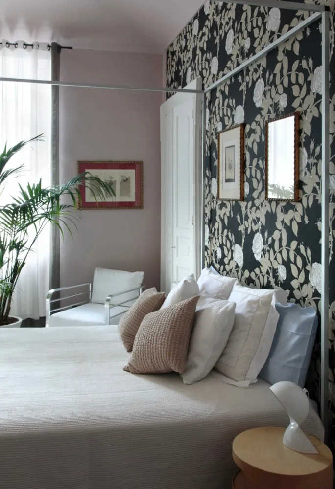 Colori, luci, tessuti e carte da parati per ridistribuire e valorizzare arredi ed oggetti preesistenti dal gusto fortemente anni ’80.