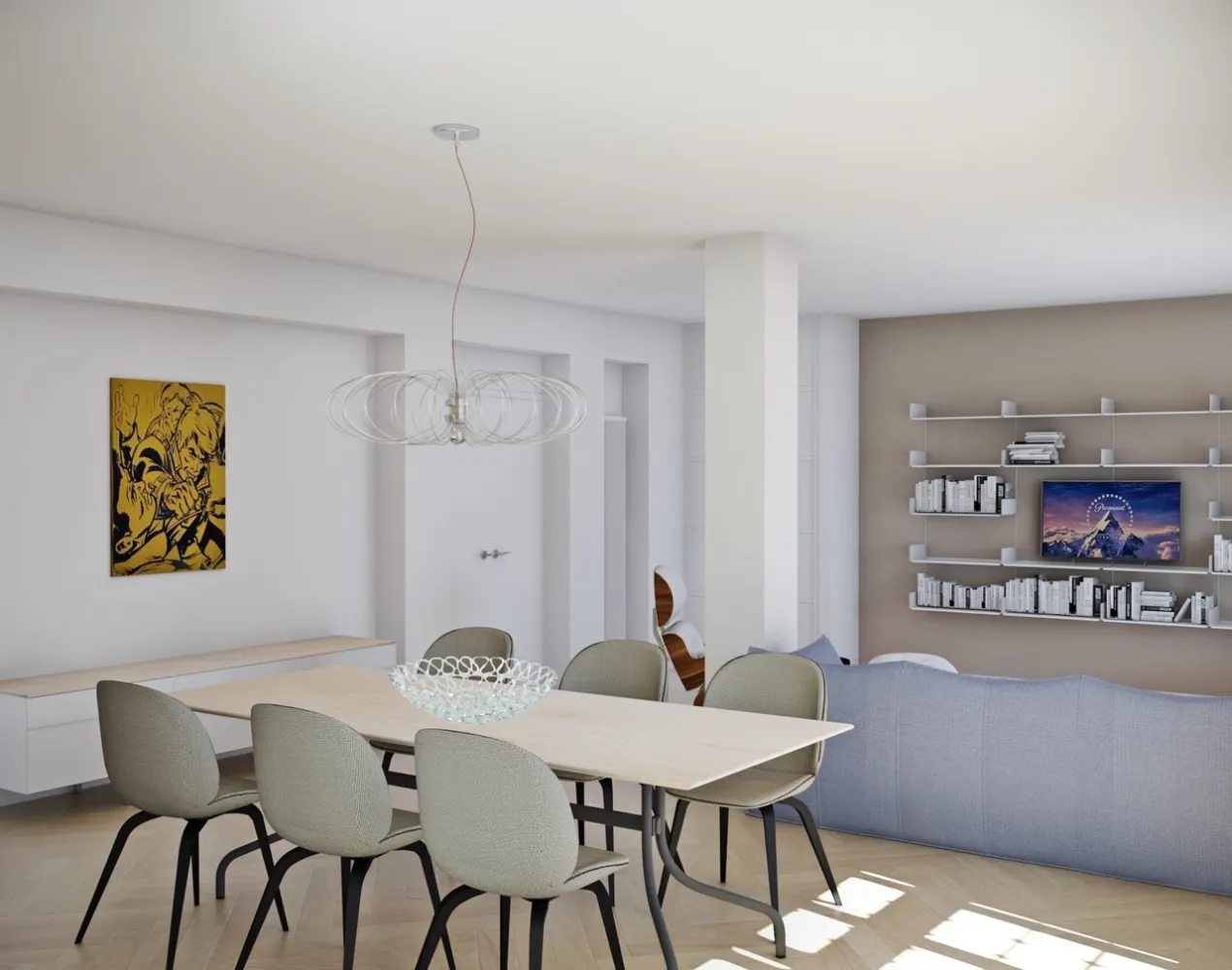 Un progetto solo in parte realizzato di arredo per un grande appartamento con terrazzo.