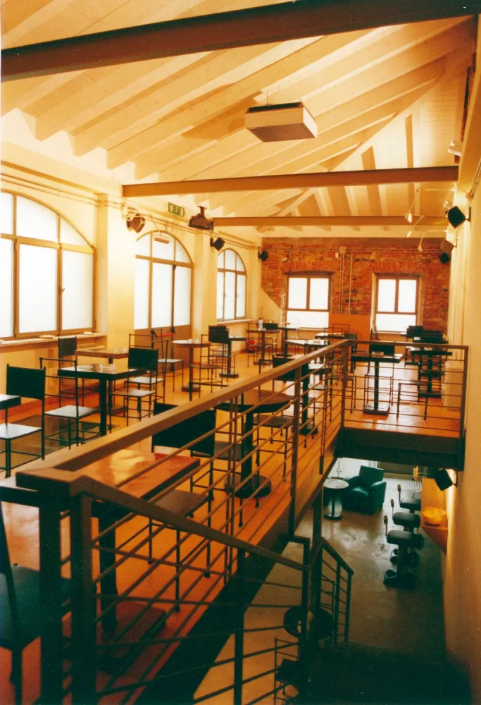 Nato come officina meccanica, trasformato in luogo polifunzionale, bar, ristorante, spazio espositivo.