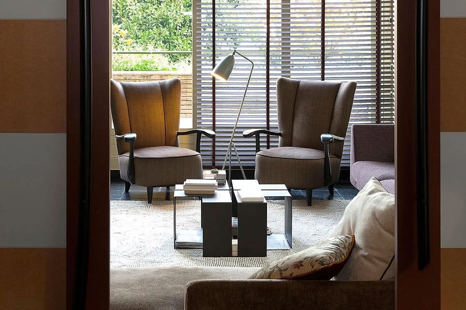 La rigidità della vecchia planimetria a stanze tradizionali è stata alterata da grandi aperture con porte scorrevoli.
