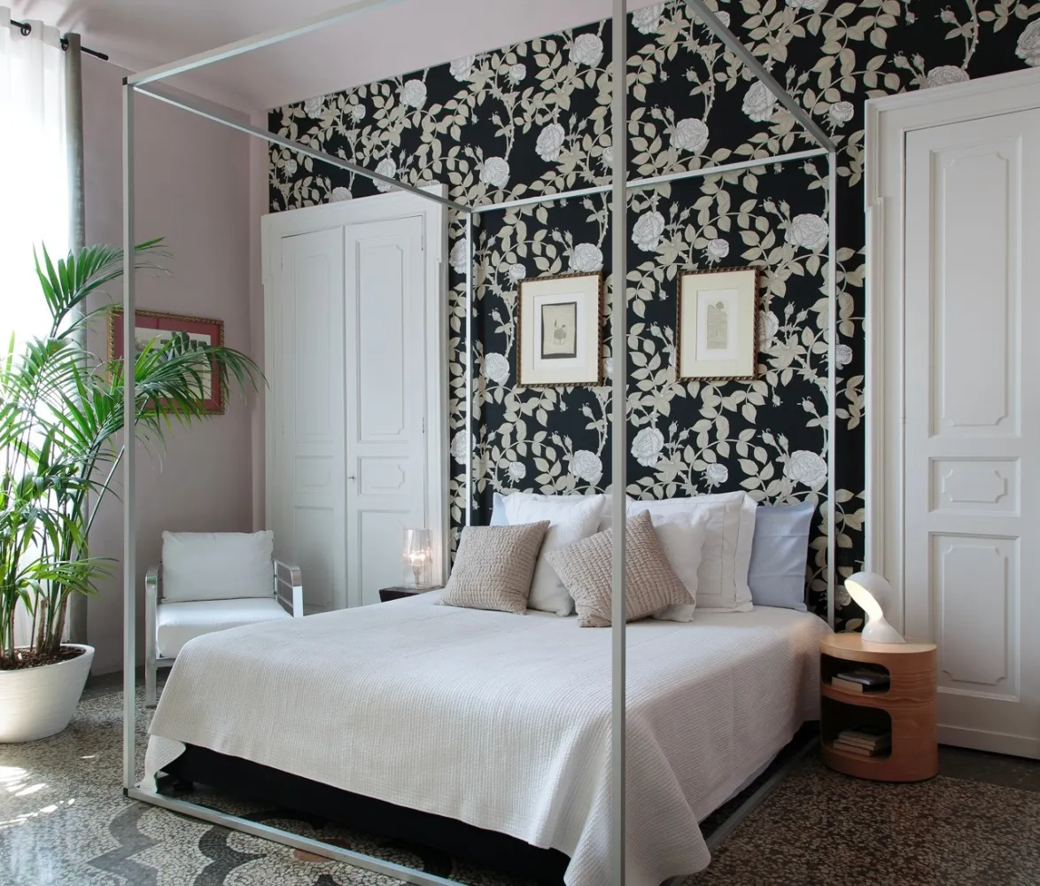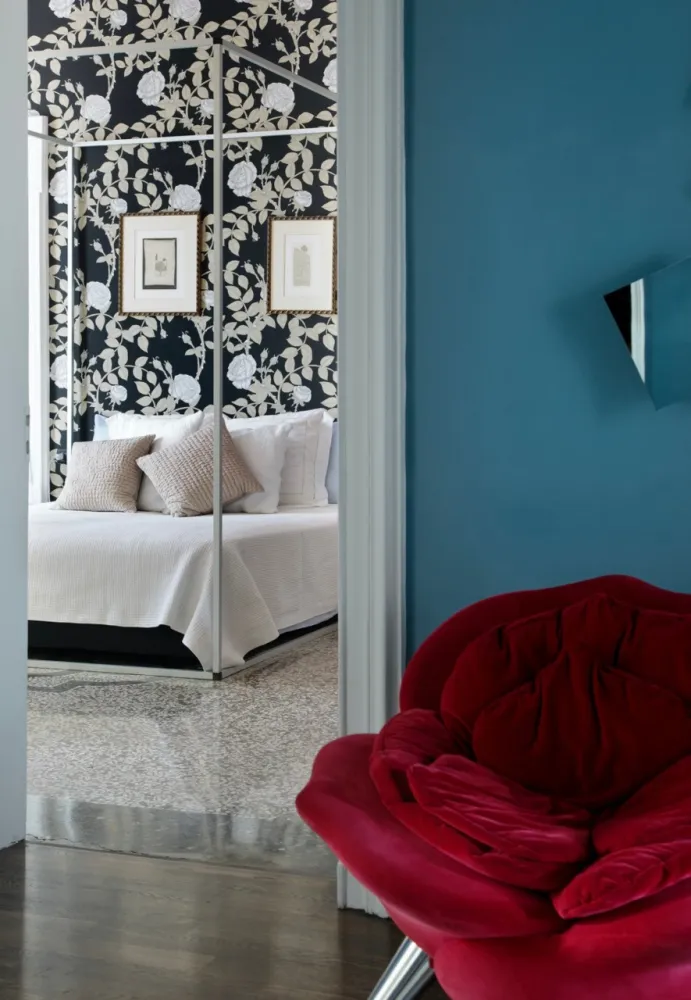 Colori, luci, tessuti e carte da parati per ridistribuire e valorizzare arredi ed oggetti preesistenti dal gusto fortemente anni ’80.